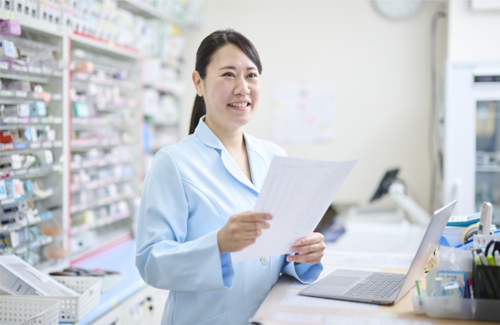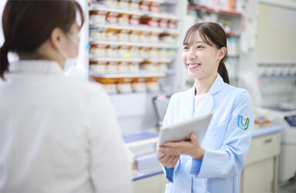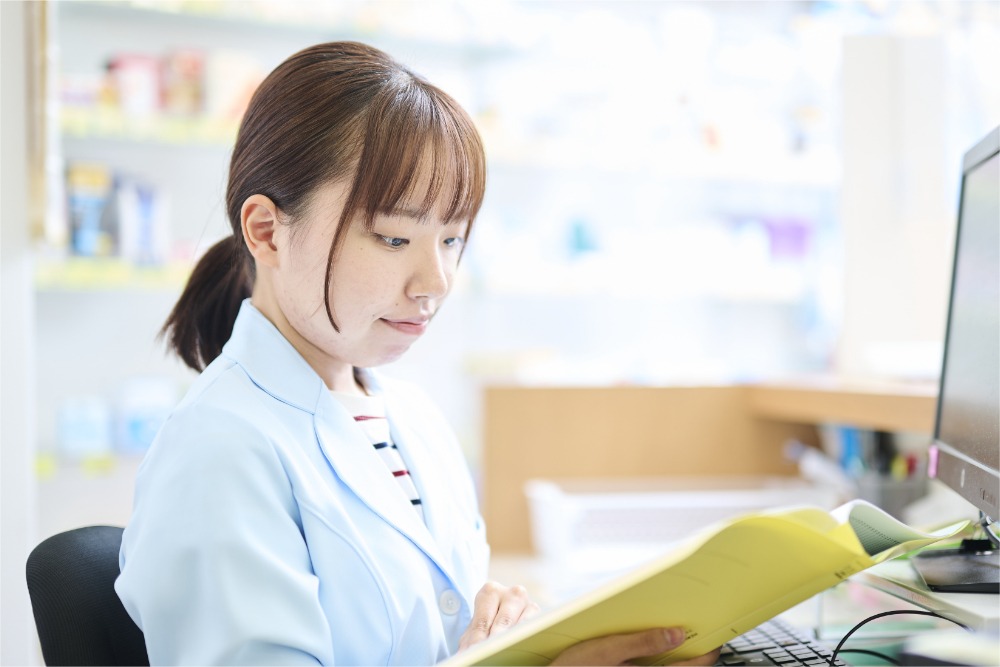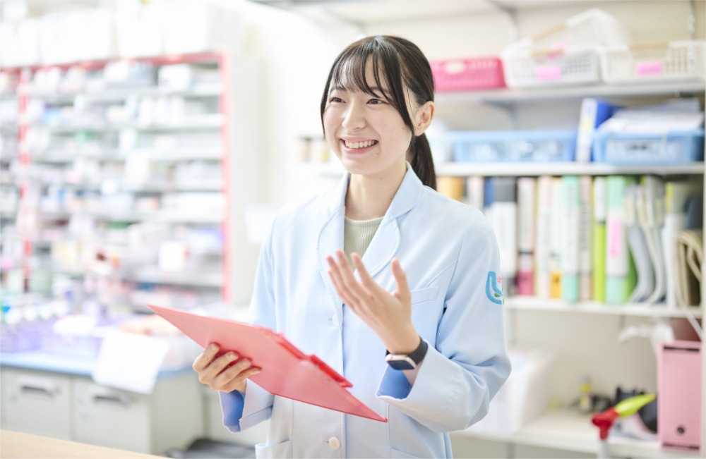 最初は覚えることが多くて大変でしたが、業務を通じて薬の知識や医療保険制度にも詳しくなり、自分自身の成長を日々実感できています。