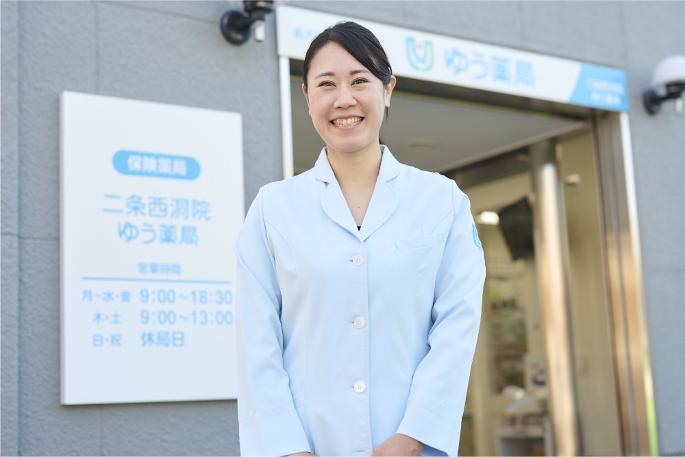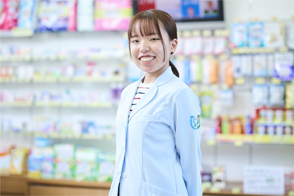 - 私は京都で生まれ育ったので、地域に根ざして貢献できる仕事がしたいと思っていました。その中で、京都を中心に展開しているゆう薬局なら、地元の方々の健康を支えることができると感じて入社を決めました。
